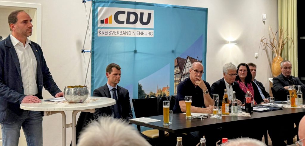 Mit Spannung wurde die Rede von Dennis Seebode erwartet, der sich erstmals als möglicher CDU-Landratskandidat präsentierte. In seiner engagierten und klar strukturierten Ansprache stellte Seebode seine Vision für den Landkreis Nienburg vor: